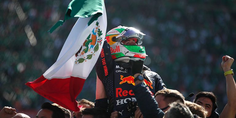 Checo Pérez arrancó a todo motor en el Gran Premio de México, pues en la largada se comió a George Russell para quitarle el tercer puesto, que ya no soltaría hasta el final.