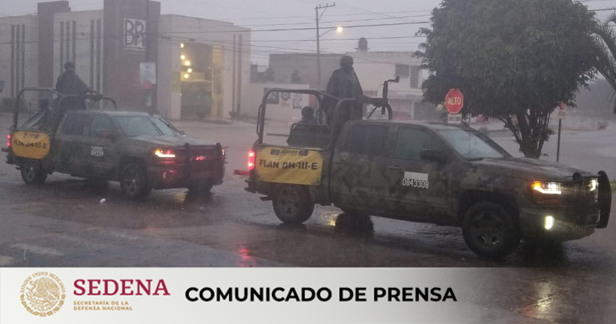 Con estas acciones, el Ejército y Fuerza Aérea Mexicanos, así como la Guardia Nacional, refrendan su responsabilidad y compromiso de servir al pueblo de México en cualquier condición, lugar y de forma ininterrumpida, a fin de realizar actividades para proteger la integridad física y los bienes de la población.