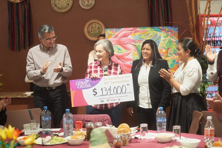 La presidenta del Sistema DIF Tamaulipas, Dra. María de Villarreal, mencionó estar muy feliz y agradecida por el donativo de 134,000 pesos, que ganaderos del estado realizaron en beneficio de las acciones del organismo que ella dirige, con motivo de la cena con causa realizada el día 21 de octubre de 2022, en donde estuvo acompañada por el gobernador del Estado, el Dr. Américo Villarreal Anaya.