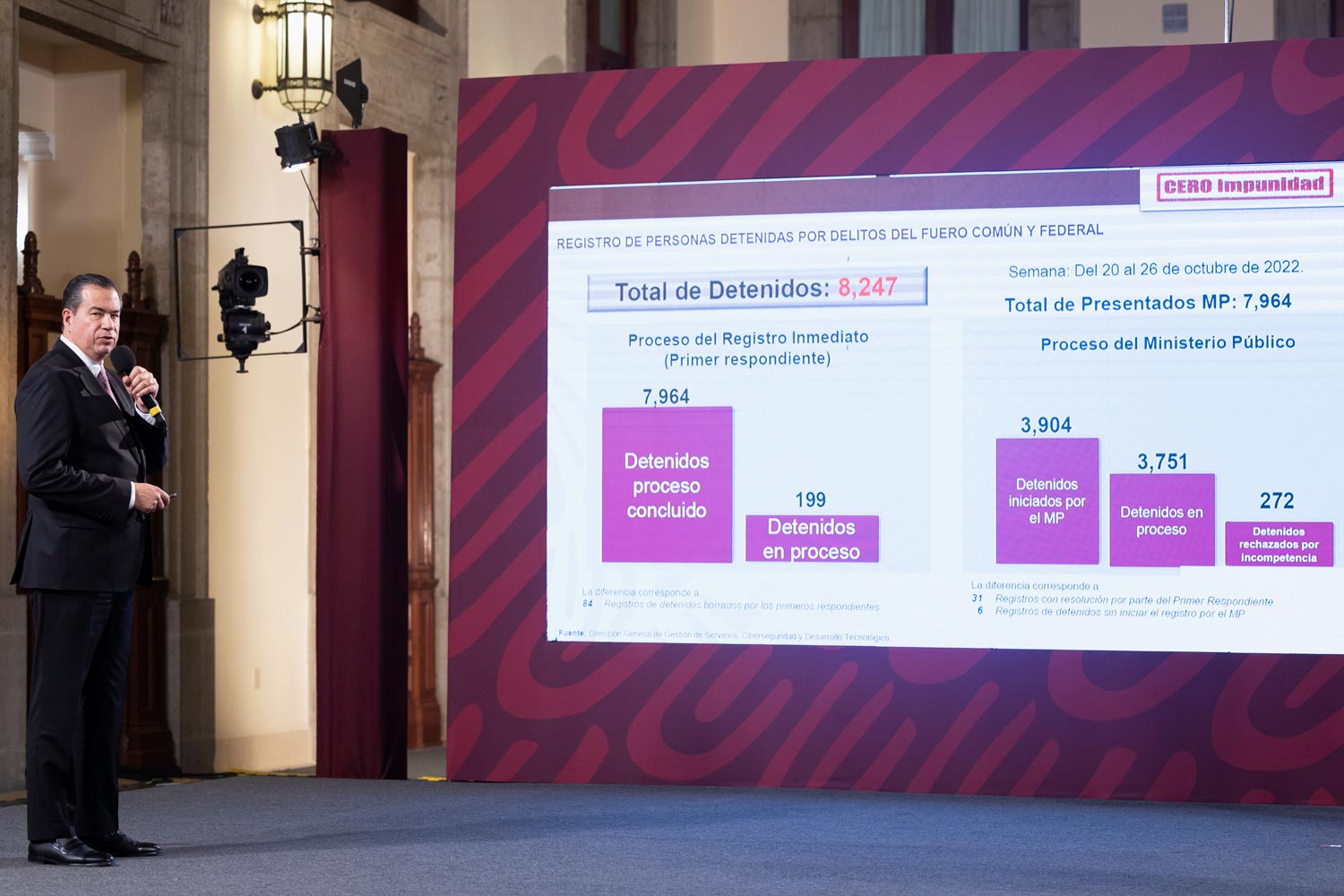 Del 1 de julio al 26 de octubre de 2022, se reportan 3 mil 194 preliberaciones y 165 amnistías, lo que significa un total de 3 mil 359 personas que recuperaron su libertad.