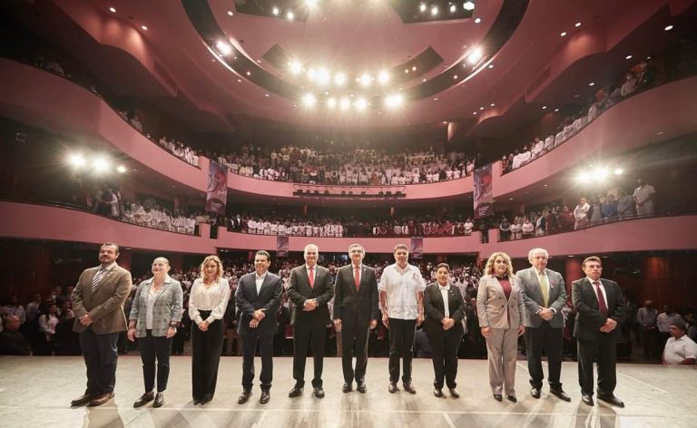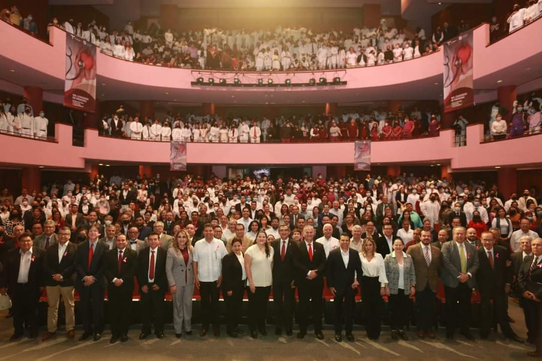 En el teatro ‘Amalia G. Caballero de Castillo Ledón’, ante la comunidad médica, estudiantes de medicina, especialistas en nutrición, en fisioterapia, enfermeras y enfermeros, el jefe del Ejecutivo estatal, reiteró que este es el inicio de un gran trabajo para poder aliviar los problemas que aquejan a la sociedad. “Cuento con todos ustedes en el aspecto más sensible que es el recuperar la salud de nuestros seres queridos”, mencionó.