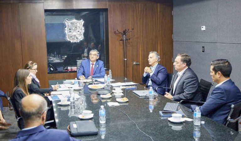 Al encuentro con el Jefe del Ejecutivo Estatal también se dieron cita Javier Ugarte de la Rosa, Vicepresidente Técnico; Claudio Zambrano Garza, Vicepresidente de Nuevos Negocios y Ángel Zúñiga, Director de Nuevos Negocios.