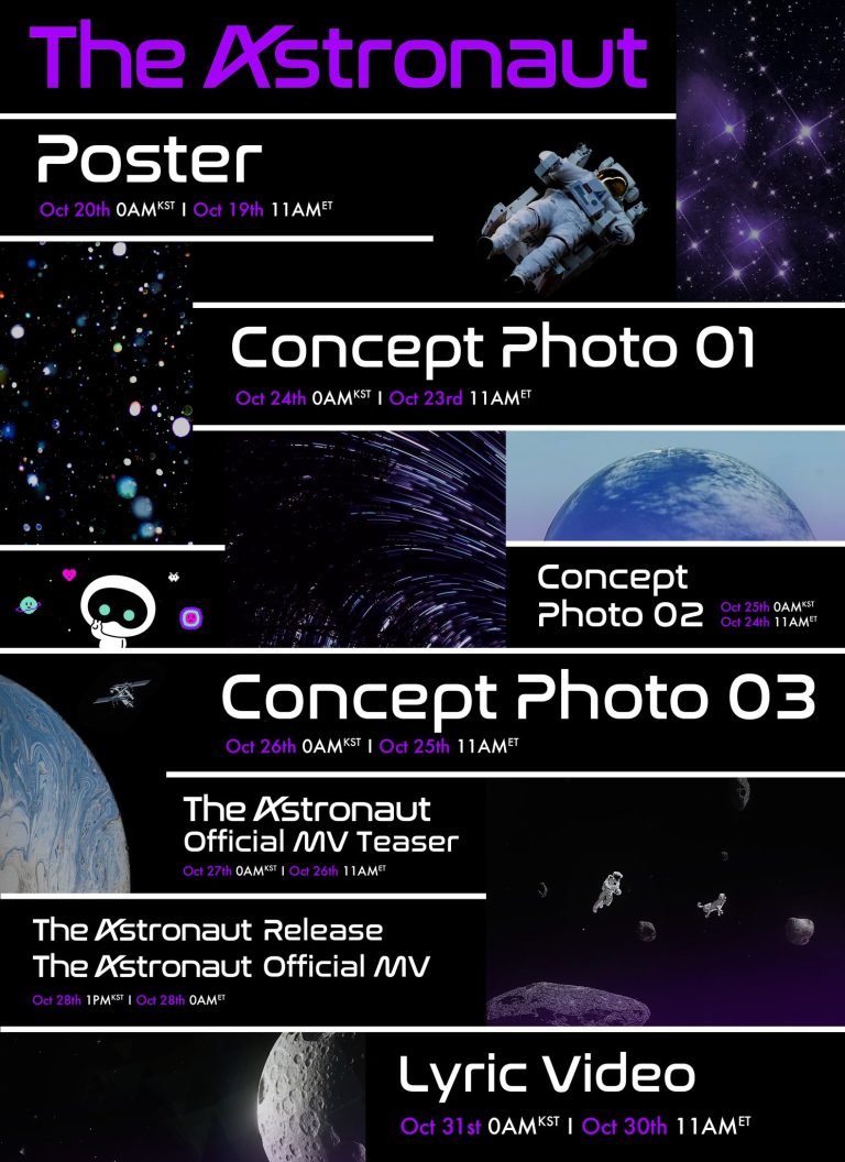 La agenda presentada por la compañía surcoreana @BIGHIT_MUSIC, muestra que el póster será revelado el 20 de octubre a la media noche (19 de octubre a las 11:00 horas tiempo de México), y el sencillo el 28 de octubre a las 13 horas, tiempo de corea.