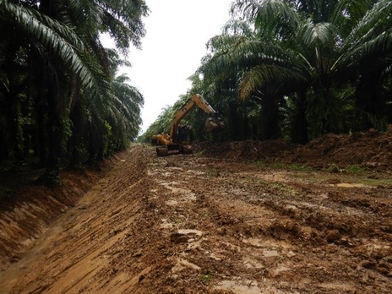 Desazolve y limpieza del dren D-042, dren ramal Palmahuaca (ramal lateral 3+405 del cañas), ejido Lázaro Cárdenas del Río.