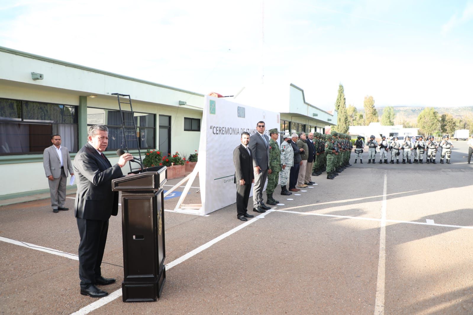 Además de miembros de la GN y el Ejército, al acto cívico acompañaron al Gobernador, el Comandante de la XI Zona Militar, General de Brigada Hugo Humberto Pedroza Salazar; el Coordinador estatal de la GN, José Silvestre Urzúa Padilla y el titular de la Oficina de Representación en Zacatecas del Instituto Nacional de Migración, José de Jesús Barajas Santos.
