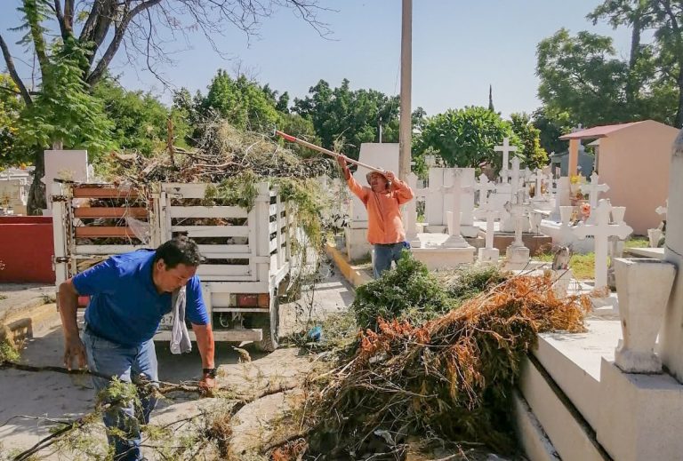 Cuadrillas de #ServiciosPúblicos realizó trabajos de limpieza de pasillo y poda de arboles en el Panteón del Cero Morelos.