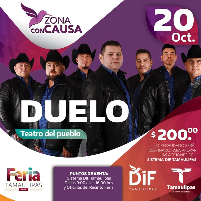 En la Feria Tamaulipas 2022 de Ciudad Victoria, al comprar los boletos del espectáculo de los artistas que se presentarán en el Teatro del Pueblo en la «Zona con Causa», se estará apoyando los programas y acciones encauzadas a beneficiar a las familias tamaulipecas que mas lo necesitan, recursos que serán canalizados al DIF Tamaulipas.