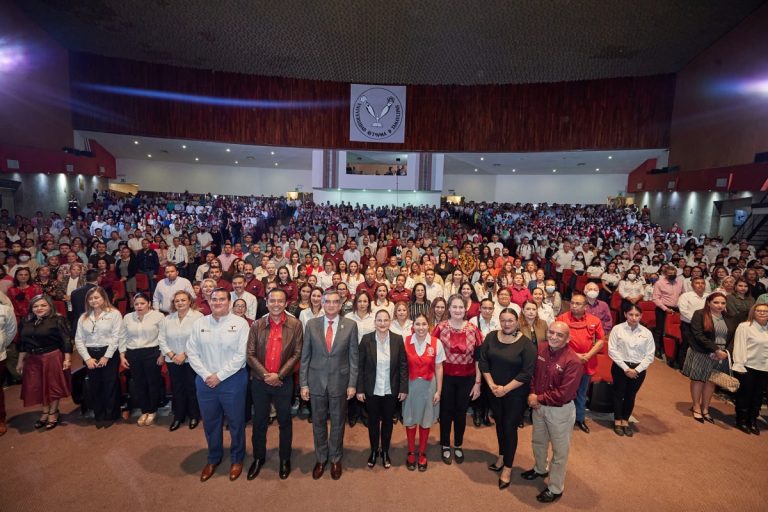 “Aquí se han reunido cerca de mil personas, pero alrededor del Estado se han registrado cerca de 4 mil docentes para participar en los 2 talleres de la caravana que se acerca a cada región del país, para escuchar las necesidades de enseñanza y experiencias pedagógicas, desde el territorio reconociendo la diversidad en todos los sentidos y actuando en consecuencia”, dijo.