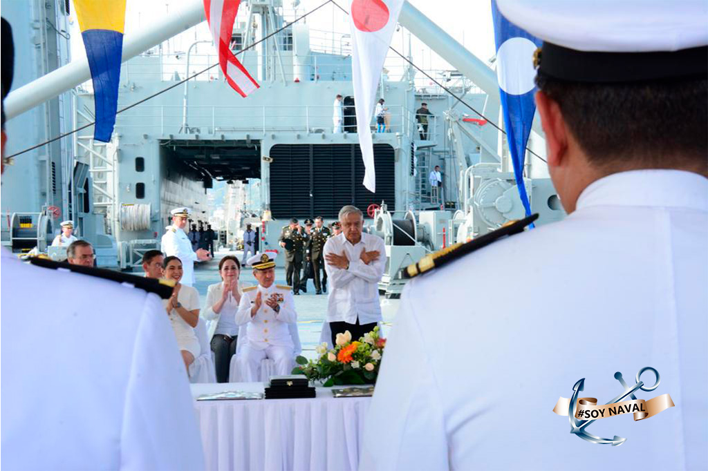 Por su parte el Licenciado Andrés Manuel López Obrador, Presidente Constitucional de los Estados Unidos Mexicanos y Comandante Supremo de las Fuerzas Armadas, aseguró que “la misión principal de la Armada de México es la defensa de nuestra patria… Somos un país que apuesta a la paz; sin embargo, por nuestra historia no podemos hacer a un lado la misión de defender nuestra Soberanía”.