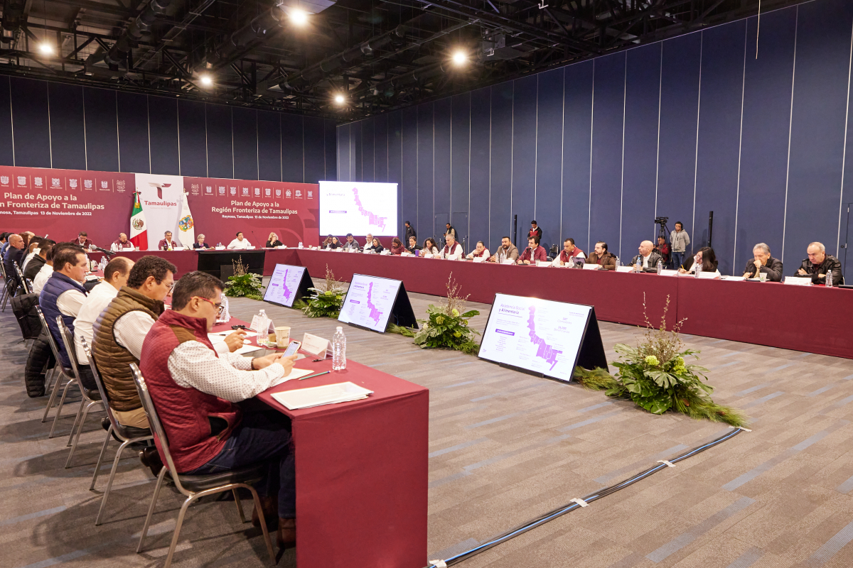 Primera vez que un gobernador reúne a presidentes municipales de la región. Dr. Américo Villarreal, gobernador de Tamaulipas y ediles de la región fronteriza.