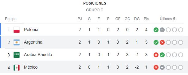 Hasta ahora Arabia Saudita y México estarían eliminados de la competencia, todo se definirá en la última fase de grupo, donde el Tricolor solo puede aspirar a clasificar al segundo lugar al vencer por mas de cuatro goles a Arabia Saudita, su próximo rival, y se cumplan los criterios de desempate.