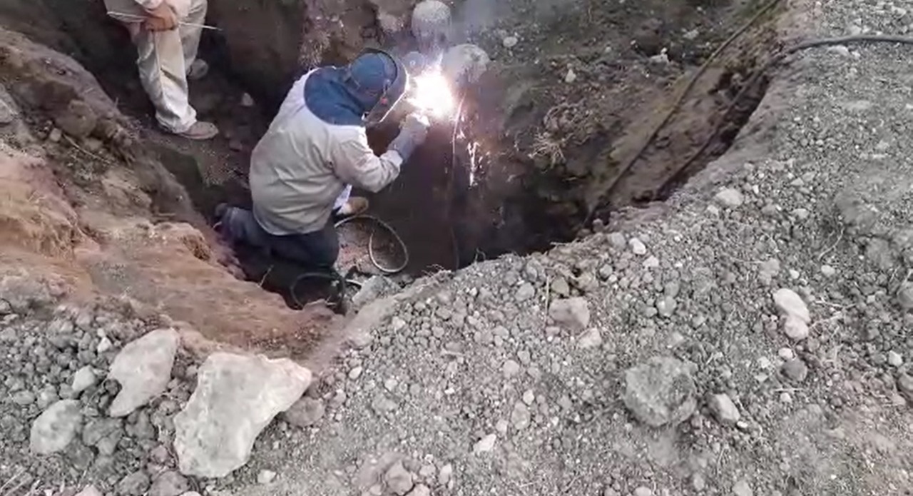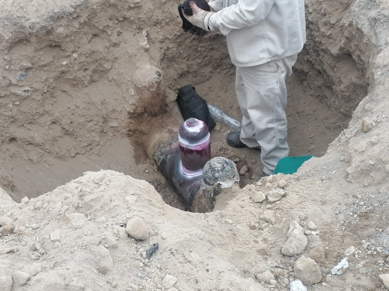 Durante la acción realizada en Otumba, Estado de México, los integrantes de la institución, con apoyo de un binomio canino, localizaron una manguera de aproximadamente 50 metros de longitud aún conectada a la toma clandestina.