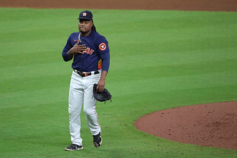 Framber Valdez, abridor de los Houston Astros negó violar reglas de Grandes Ligas en cuanto al uso de alguna sustancia pegajosa para tratar de mejorar sus lanzamientos en la Serie Mundial.