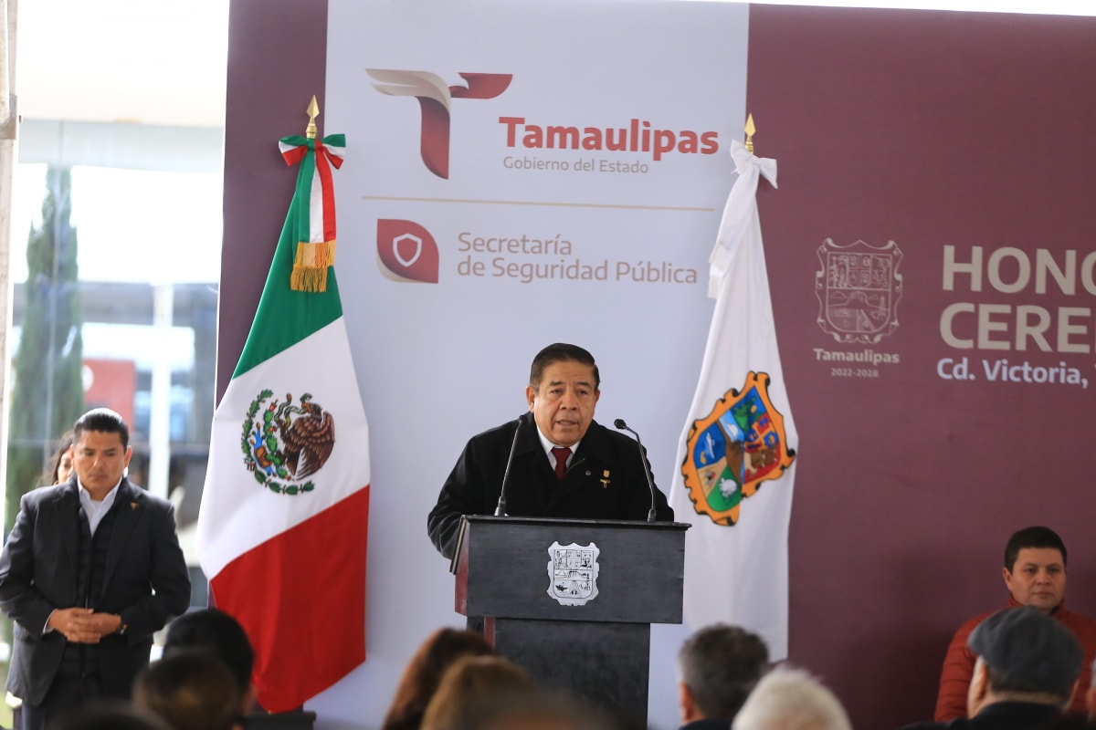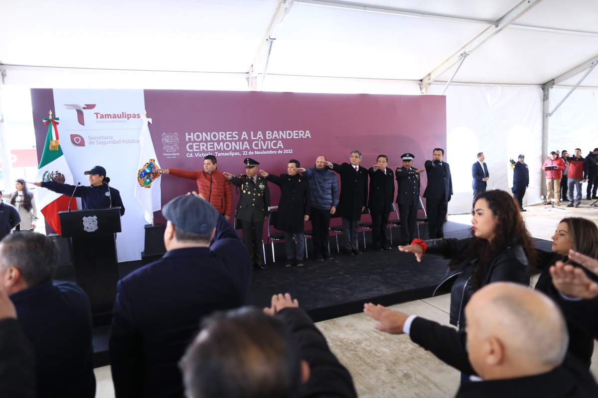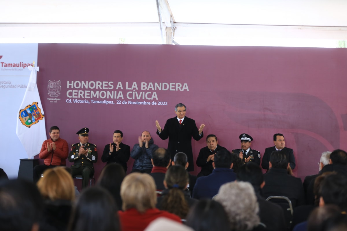 Al presidir, este martes por la mañana, la ceremonia cívica de honores en el complejo de la Secretaría de Seguridad Pública, el gobernador del Estado, hizo un reconocimiento a mandos y elementos de la dependencia estatal, que conforman la principal fortaleza de seguridad, para cumplir la prioridad de servir y proteger a la ciudadanía, regresando la paz y la tranquilidad a las y los tamaulipecos.