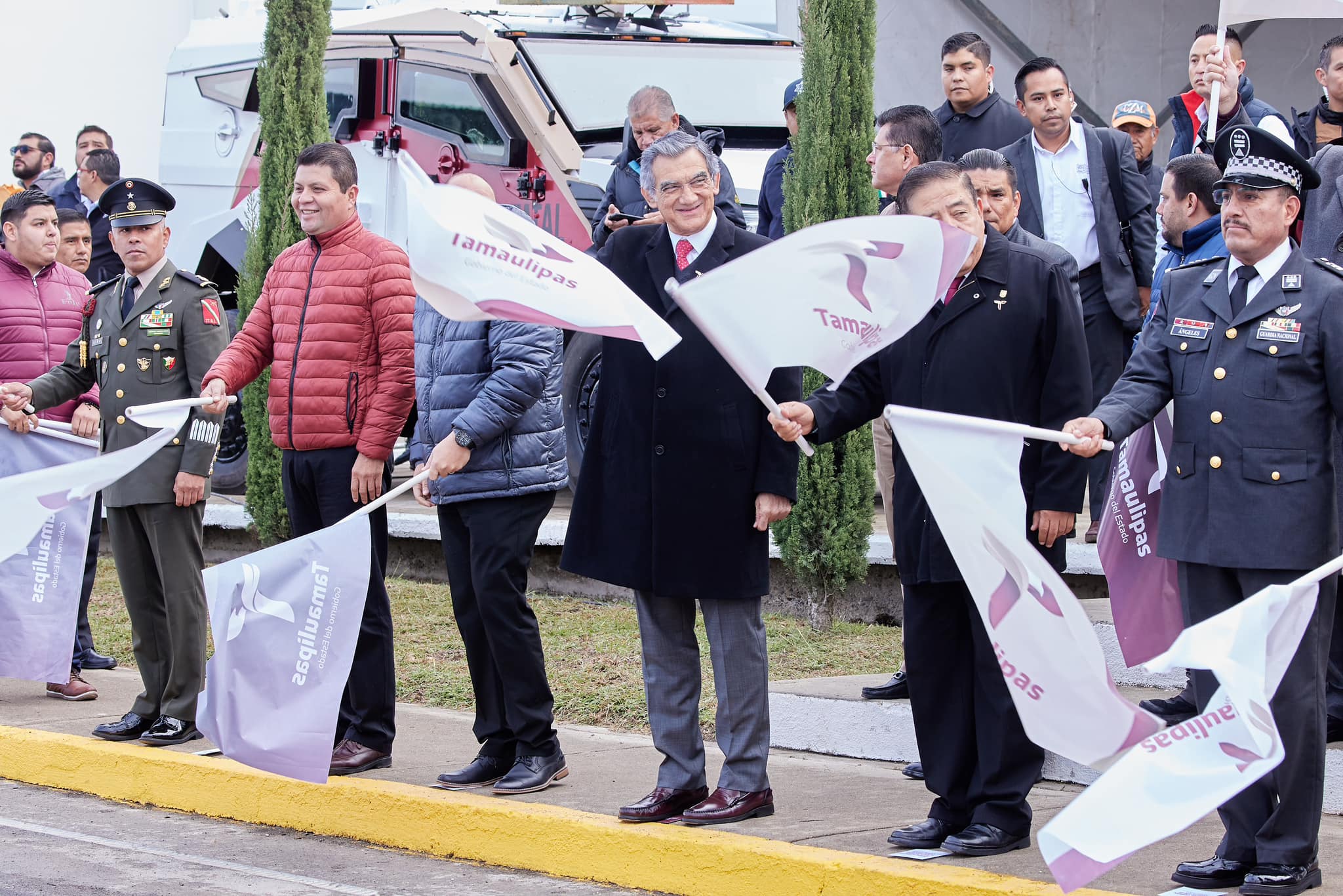 Esta mañana del 22 de noviembre de 2022, en el complejo de seguridad de Ciudad Victoria, Tamaulipas, el gobernador Américo Villarreal Anaya entregó un segundo lote de patrullas de la nueva Guardia Estatal y reiteró su compromiso por hacer los esfuerzos necesarios, para que la corporación y toda su fuerza operativa, cuenten con las mejores condiciones de equipamiento, capacitación y la dignificación de su labor.