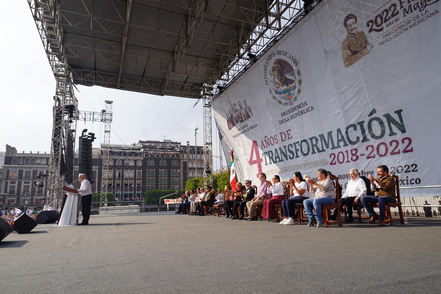 “Sigamos haciendo historia. Continuemos impulsando la revolución de las conciencias. Hagamos realidad y gloria el Humanismo Mexicano”, exclamó el presidente Andrés Manuel López Obrador ante miles de personas que lo acompañaron en la celebración por cuatro años de la Cuarta Transformación.