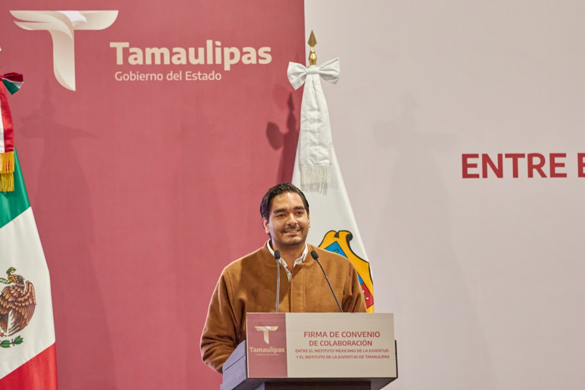 En Reynosa, Tamaulipas, el gobernador Américo Villarreal Anaya firmó como testigo de honor el convenio de colaboración con el Instituto Mexicano de la Juventud y llamó a los jóvenes de Tamaulipas a aprovechar su entusiasmo y energía para sumarse a la trasformación, aportando ideas, iniciativas y opiniones a través del Plan Estatal de Desarrollo.