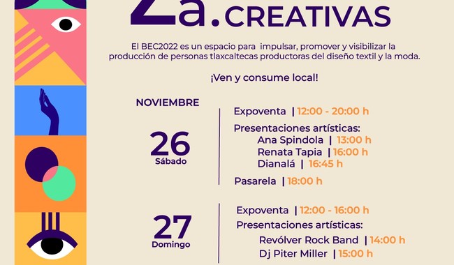 El Bazar de Economías Creativas (BEC), llega por segunda ocasión al Palacio de Cultura de Tlaxcala e con el objetivo de impulsar, promover y visibilizar las creaciones y talento de personas productoras tlaxcaltecas que se dedican al diseño textil y la moda.
