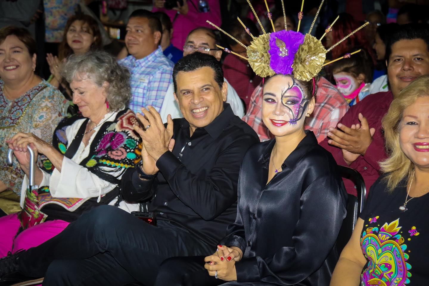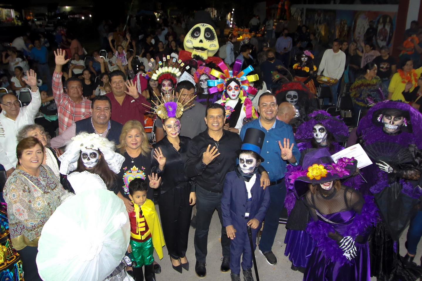 El alcalde de Victoria, Lalo Gattás, acompañado por su esposa, la presidenta del DIF Victoria, Sra. Lucía Rodríguez de Gattás, presidieron el evento, junto con las familias victorenses, pudieron disfrutar de cantos, bailables, pasarelas de disfraces alusivos al tema del Día de Muertos.