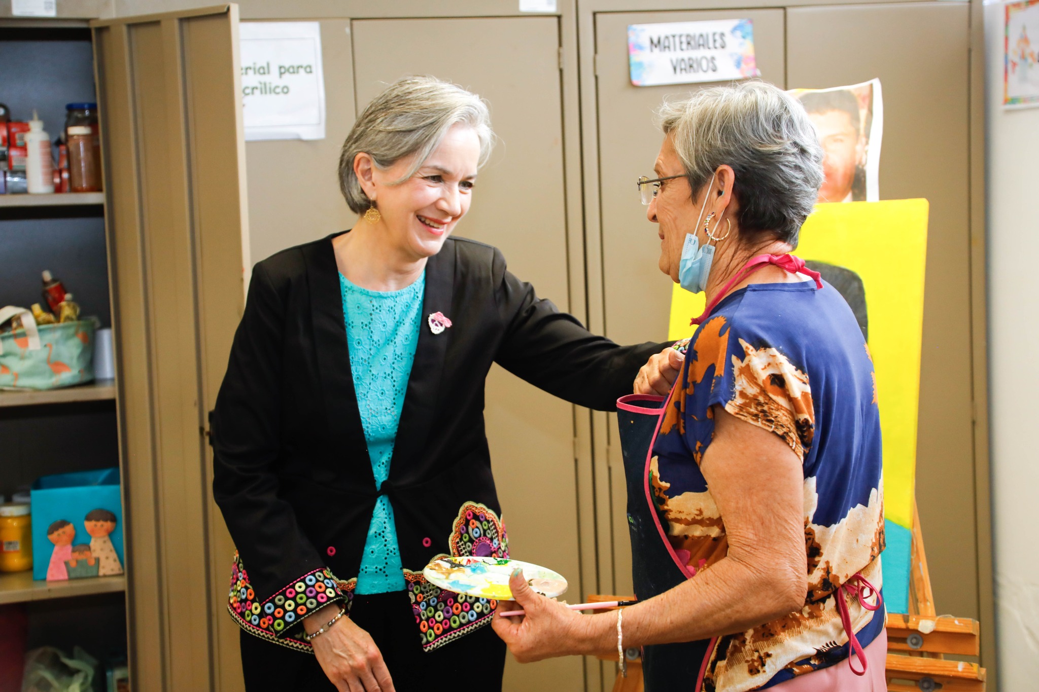 Posteriormente, se dirigió a visitar cada uno de los talleres ocupacionales que actualmente se mantienen en operación, como son los de corte y confección, bordado a máquina, gimnasio, huertos, dibujo y pintura, zumba, baile de salón, yoga, computación, electrodomésticos, manualidades, gimnasia cerebral, cachibol, danza folclórica, coro y música; a los cuales asisten casi 300 adultos activos.