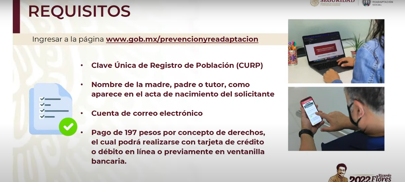 Para acceder a este servicio, las y los solicitantes deberán ingresar a www.gob.mx/prevencionyreadaptacion y cubrir los siguientes requisitos: