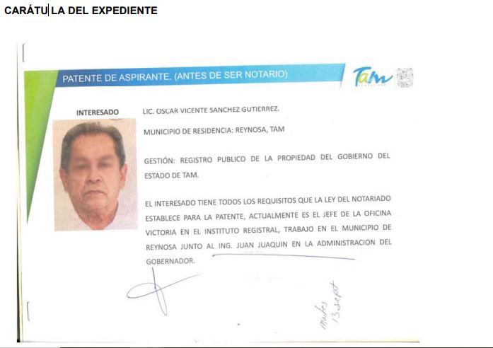 La Directora de Asuntos Notariales de la Subsecretaría de Legalidad y Servicios Gubernamentales de la Secretaría General de Gobierno del Estado de Tamaulipas, Licenciada Guillermina Reynoso Ochoa, dictamó las irregularidades en el otorgamiento de las Patentes de Aspirante al cargo de Notario Público, encontrando que los expedientes carecen de algunos de lo siguientes documentos: