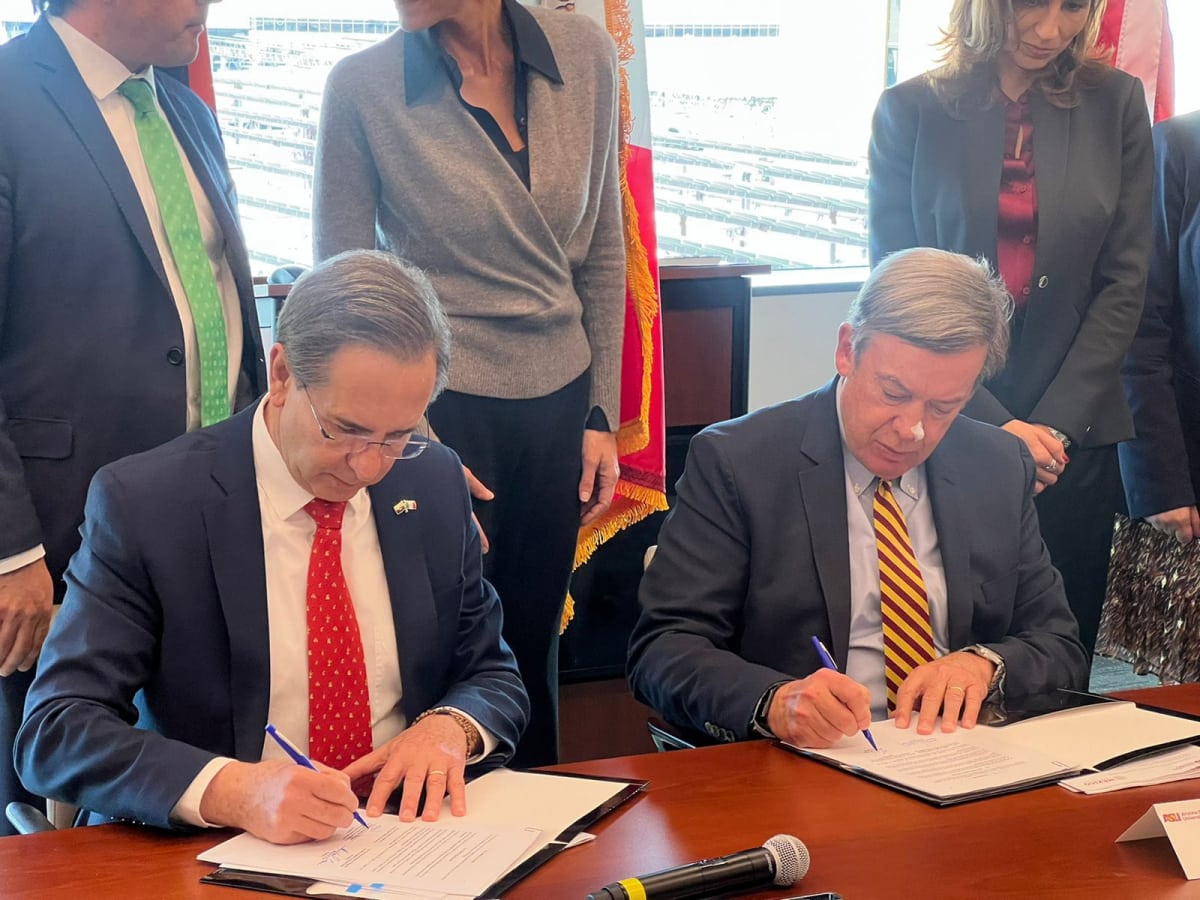 PHOENIX, Arizona, EE.UU.- A invitación de la Embajada de México en Estados Unidos, la secretaria de Desarrollo Económico, Ninfa Cantú Deándar asistió a la firma del Memorándum de Entendimiento para la Cooperación Científica y Educativa en la industria de semiconductores, MOU (por sus siglas en inglés), entre el Embajador Esteban Moctezuma Barragán y Michael M. Crow, presidente de la Universidad Estatal de Arizona.