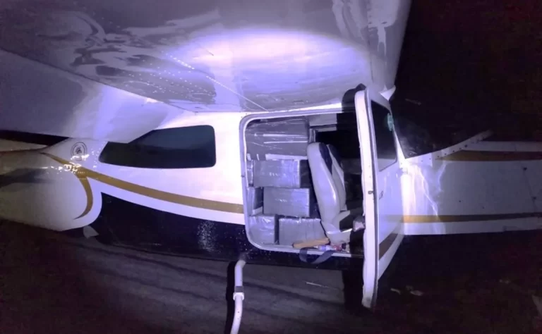 Debido al contacto radar y visual, se observó que la aeronave ilícita aterrizó en el Aeropuerto Internacional de Mazatlán, Sin., por lo que al sitio del aterrizaje arribó personal del Ejército Mexicano, quien estableció un perímetro de seguridad y efectuó una revisión a la aeronave, detectándose 2 personas y 11 paquetes con un peso aproximado de 469 kilogramos de posible cocaína.