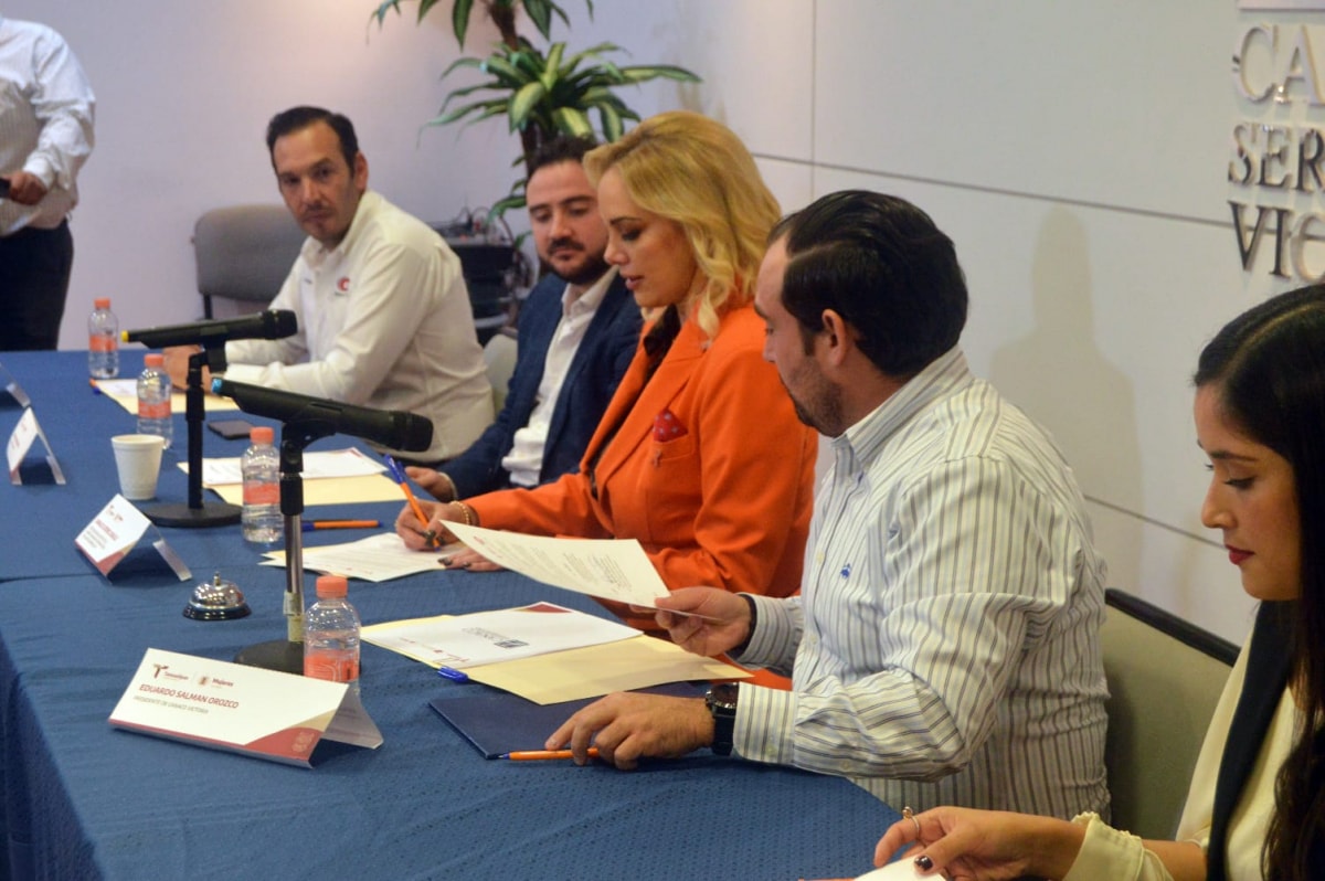 Signaron este convenio Eduardo Salman Orozco, presidente de la CANACO SERVYTUR Victoria y anfitrión de este evento; Mario Flores Pedraza, presidente de COPARMEX Victoria; en representación de Rodolfo Terán Saucedo, presidente de la CMIC VICTORIA Alejandro Salinas Cortina, secretario del comité directivo y en representación de David Canales González, presidente de CANIRAC Victoria , hizo presencia Susana Clementina Rivera Salazar, coordinadora de Eventos y Capacitaciones de la CEMIRAC.
