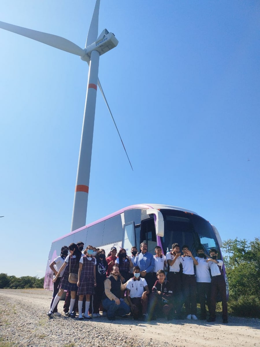 los parques eólicos más grandes del Estado, ‘La Mesa’, ubicado en el municipio de Llera, en donde José Ramón Silva Arizabalo, titular de la CETAM, acompañado por parte de su equipo de trabajo entre ellos Daniel Gómez Gámez, Korina López Garza, Mariajosé Bernal Mirafuentes y Zoila Fabiola Macías Durán, dieron la bienvenida y acompañaron a un grupo de alumnos de la escuela Secundaria Técnica No. 1 ‘Alvaro Obregón’.
