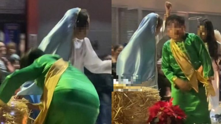 Todo indica que el niño disfrazado de José se emocionó tanto por las ovaciones y la canción de de ‘El baile de Santa Claus’ que comenzó a bailar un ‘perreito’ sin control al ritmo de los aplausos. Incluso, el pequeño hizo ‘twerk’ en medio de la pastorela, lo que provocó gracia en los asistentes.