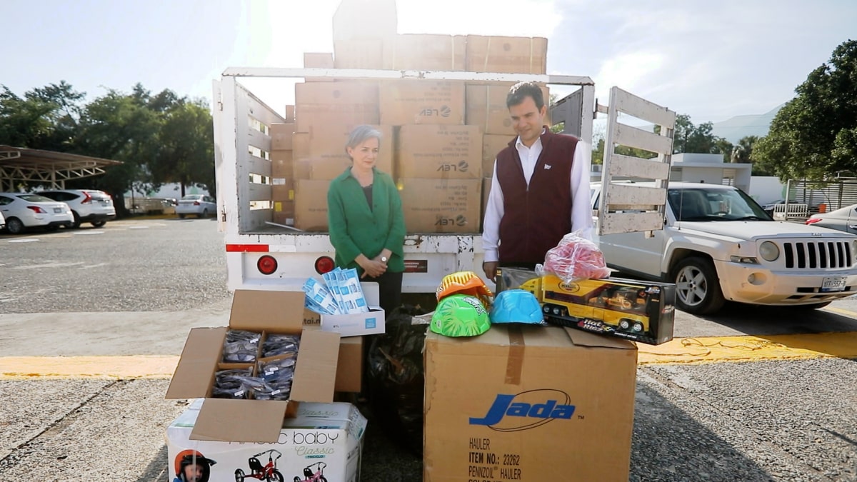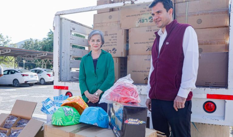 El donativo recibido consiste en 10 mil piezas de anteojos para vista cansada, 2 mil piezas de cubrebocas, 452 balones de futbol, 33 triciclos y 202 juguetes, que vienen a reforzar los apoyos que se entregan para beneficiar a las familias mas vulnerables de la entidad.