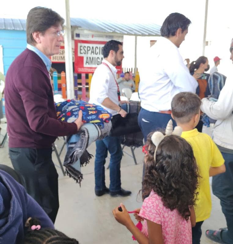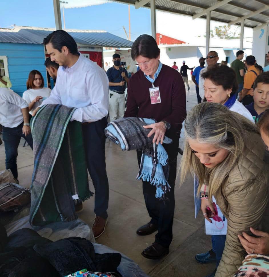 A través del subsecretario Gabriel de la Garza Garza y en compañía del presidente municipal, Carlos Peña Ortiz, el gobierno de la transformación, hizo entrega de los cobertores, a fin de que los ciudadanos de otras nacionalidades que esperan su ingreso al vecino país del norte, se protejan de las bajas temperaturas que se han registrado en las últimas horas.