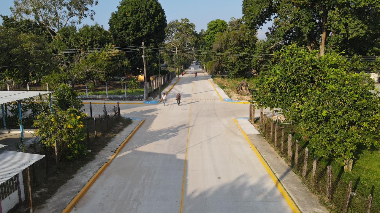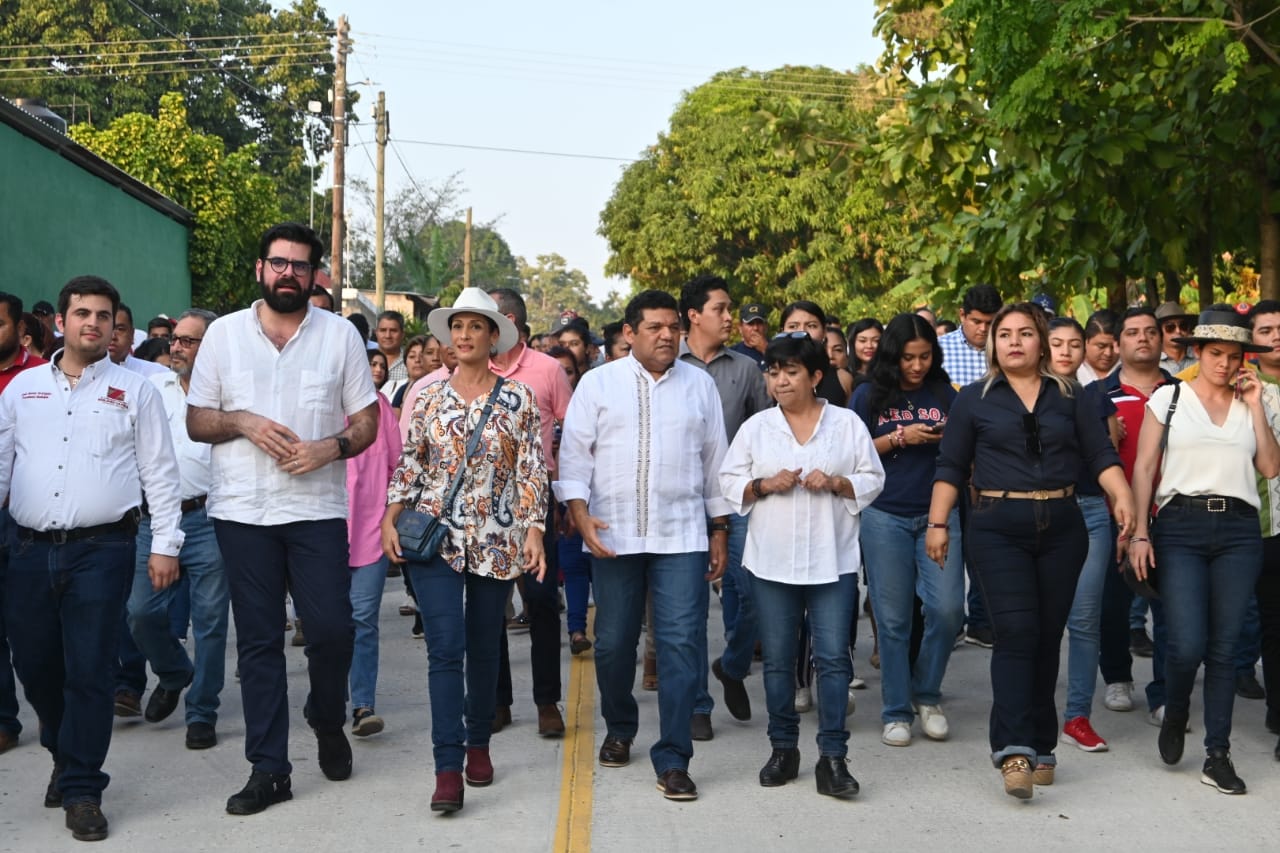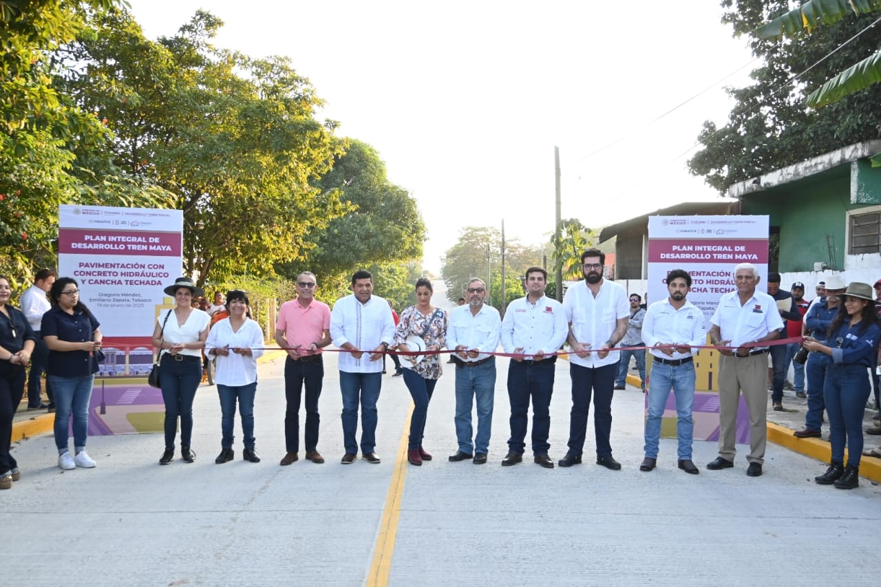 La entrega de obras incluyó varias calles pavimentadas con concreto hidráulico, además de banquetas, guarniciones y rampas para personas con discapacidad, así como una cancha techada en el Jardín de Niños “Coronel Gregorio Méndez Magaña”.