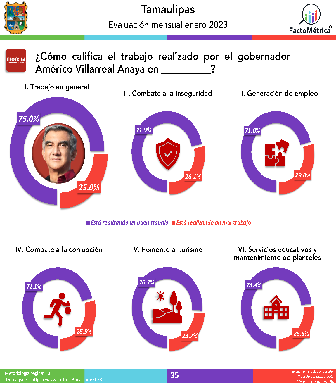 El documento de FactoMétrica señala que Américo Villarreal Anaya es el mejor gobernador del país, en el trabajo realizado al combatir la corrupción, con un porcentaje de aceptación de 71.1 por ciento.