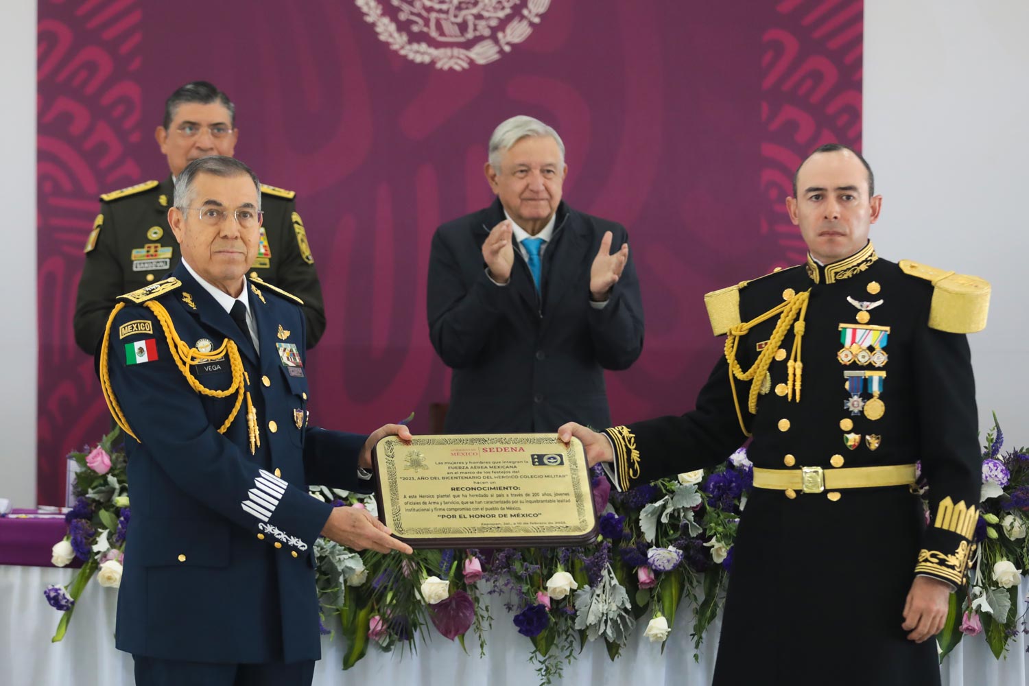 Además, el comandante de la Fuerza Aérea Mexicana, José Gerardo Vega Rivera; el director de Heroico Colegio Militar, general Jorge Antonio Maldonado Guevara y el director del Colegio del Aire, Bertín Hernández Mercado.