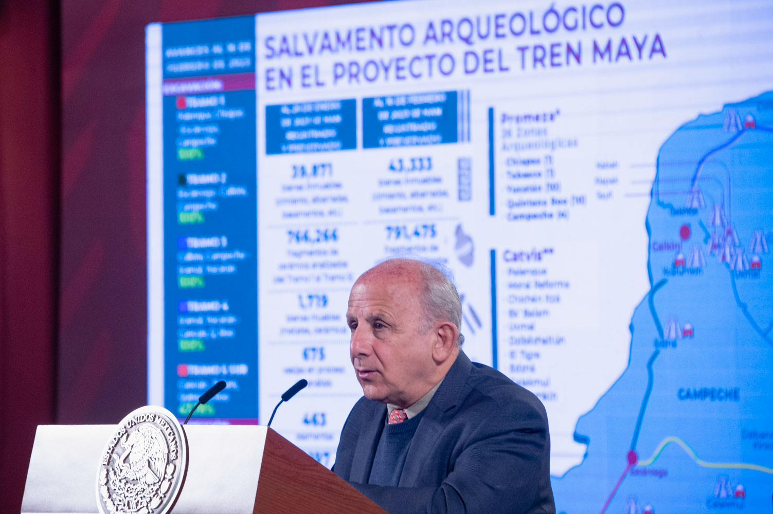 Durante el informe de acciones de salvamento arqueológico en la ruta del Tren Maya, el titular del INAH reportó que los trabajos de excavación se concentrarán en los tramos 6 y 7, donde se han recuperado 340 monumentos y 224, respectivamente.