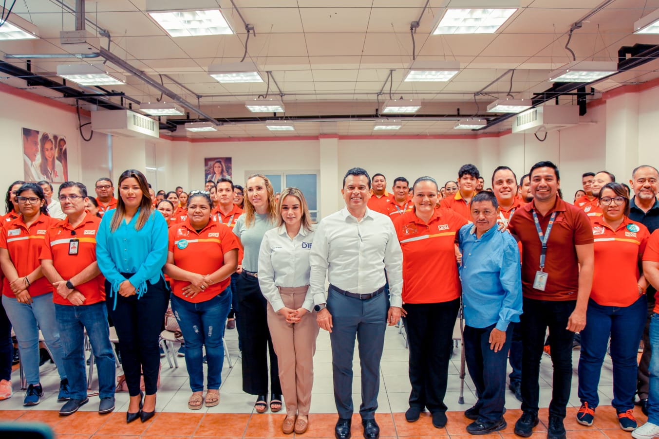 Al participar como invitado en el evento, el alcalde Eduardo Gattás Báez reconoció el gran sentido social en esta campaña de propietarios, directivos y empleados de la empresa, representados en el presídium por la gerente plaza Victoria Lic. Norma Teresa Fernández.