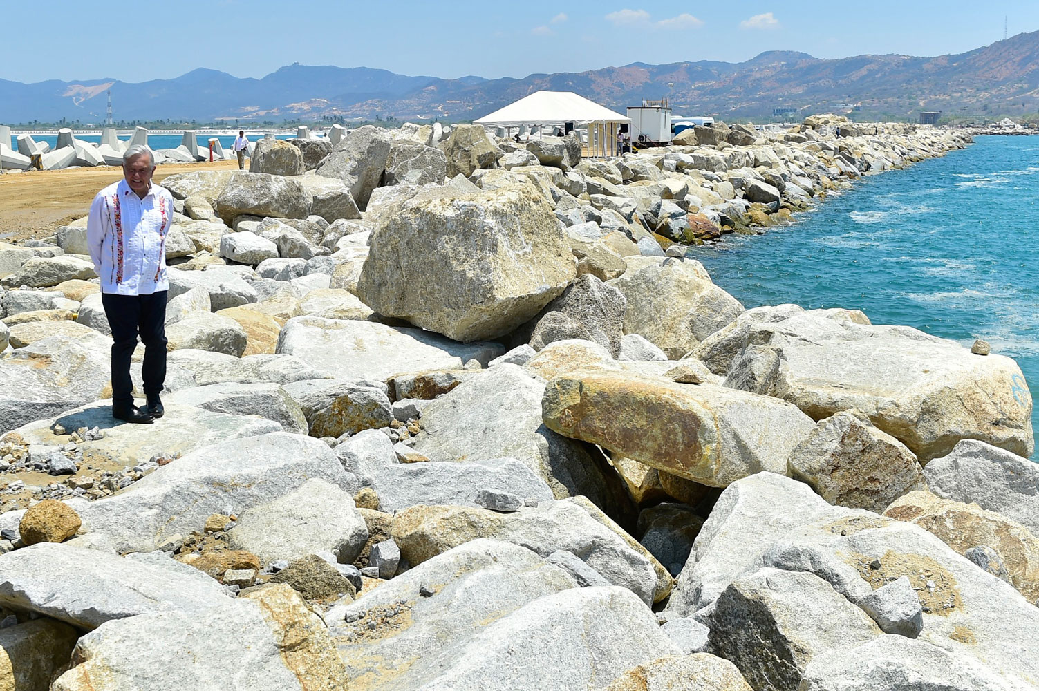 Al concluir la gira de supervisión por el Istmo de Tehuantepec, el presidente Andrés Manuel López Obrador destacó que las obras del puerto de Salina Cruz, Oaxaca, entre ellas, el rompeolas y las plataformas para contenedores, fortalecerán el comercio con la costa este de Estados Unidos, lo que significará “progreso con empleo y justicia”.