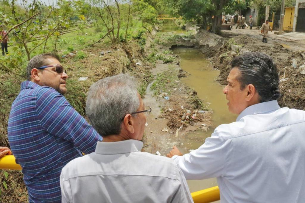 Eduardo Gattás Báez detalló que como primeras acciones se trabaja en la limpieza y desazolve de drenes pluviales que se llenaron de arena, tierra, piedras y ramas, restauración de semáforos dañados y retiro de material y escombro de la barda colapsada en la escuela primaria José Dolores Ponce Rodríguez.