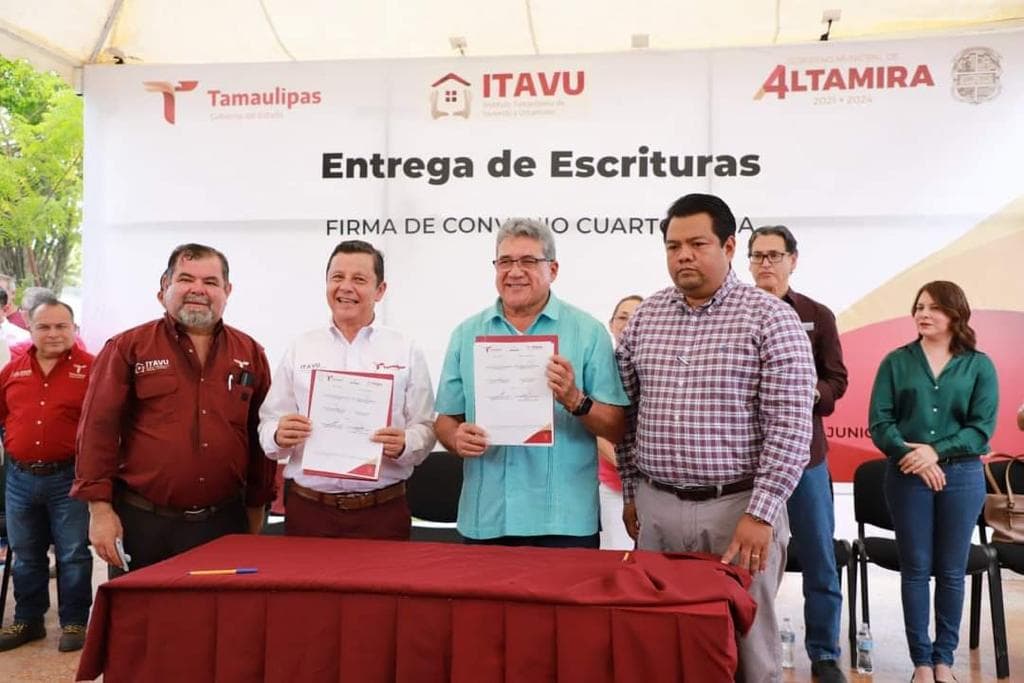 Altamira, Tamaulipas. – Con firme convicción de abatir el grave rezago que se tenía en regularización de predios y mejoramiento de vivienda en el municipio de Altamira, el Gobierno de Tamaulipas a través del Instituto Tamaulipeco de Vivienda y Urbanismo (ITAVU), firmó un convenio de colaboración que beneficia a las familias más desprotegidas de este municipio.