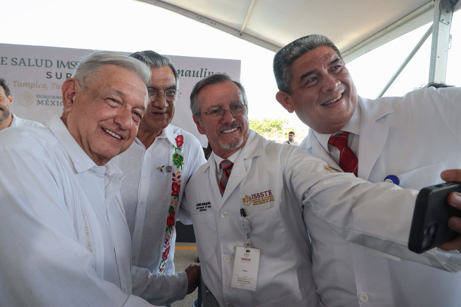 Acompañaron al presidente en este evento: Gisela Lara Saldaña, directora general de los Servicios de Salud del IMSS- Bienestar; Joaquín Juárez Durán, director del Hospital General «Dr. Carlos Canseco», el secretario de Salud del estado, Vicente Joel Hernández Navarro y el director de la COFEPRIS, Alejandro Svarch Pérez.
