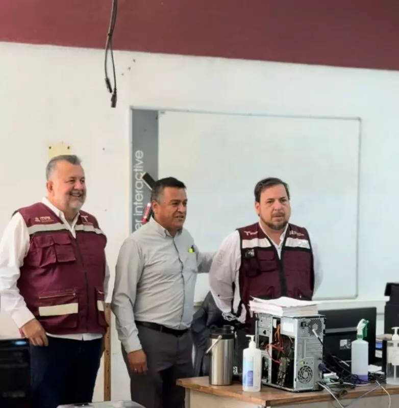 El titular del ITIFE, Sergio Oliverio Castillo Sagastegui, en conjunto con el secretario de Educación de Tamaulipas, Miguel Ángel Valdez García, visitaron la Escuela Secundaria General “Romualdo Villarreal González”, ubicada en el municipio de Villa de Casas, donde supervisaron los trabajos de rehabilitación de la techumbre y del laboratorio de cómputo, espacios que presentaban un notable deterioro.
