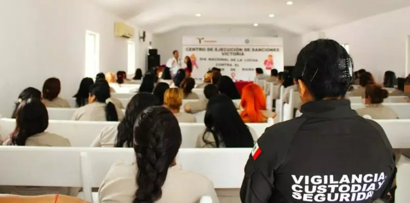 Ciudad Victoria, Tamaulipas.- En conmemoración del Día Mundial de la Lucha contra el Cáncer, el Centro de Ejecución de Sanciones (CEDES) Victoria, realizó una conferencia dirigida a mujeres privadas de la libertad (PPLs), con el objetivo de fomentar la detección temprana del cáncer de mama y fortalecer la atención a la salud mental dentro del sistema penitenciario.