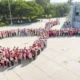 En un acto solidario y simbólico, las y los participantes, portando prendas en color rosa, se reunieron en la explanada de las oficinas centrales de la SET para formar un gran moño humano, ícono de la lucha contra esta enfermedad.