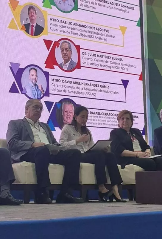 Expresó que Julio Martínez Burnes, director general del Consejo Tamaulipeco de Ciencia y Tecnología (COTACYT), y Mara Grassiel Acosta González, rectora de la Universidad Tecnológica de Altamira (UTALT), fueron los dos representantes de la SET en el panel, en el que también participaron Basilio Armando Kot Ascorve, vicerrector académico del IEST Anáhuac; David Abel Hernández, gerente general de AISTAC; y Rafael Gerardo González Acuña, de CANIETI.