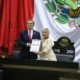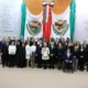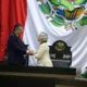 Al término de la ceremonia en el Salón de Sesiones, el gobernador acompañado también por la titular del Poder Judicial, Tania Contreras y de la presidenta de la Mesa Directiva del Congreso, Eva Reyes, develó el nombre de la maestra Cecilia Lugo, inscrito con letras doradas en el Muro de Honor al Mérito “Luis García de Arellano”.