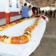 Este pan tradicional preparado de manera artesanal contó con una longitud de 20 metros y está compuesta por un aproximado de 40 barras de rosca horneadas de manera individual en la panadería del centro.