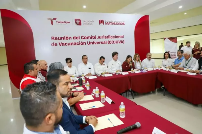 La reunión, que se llevó a cabo en las instalaciones del Centro de Convenciones Mundo Nuevo de este municipio fronterizo, se contó con la asistencia del delegado del IMSS Ordinario, José Luis Aranza Aguilar; el comisionado estatal de la COEPRIS, Mario Rebolledo Urcádiz; el director general de Servicios Médicos, Calidad y Enseñanza, Carlos González Castro; el director del Servicio Nacional de Salud Pública, Ernesto Huidobro Guevara; así como la directora del Distrito de Salud para el Bienestar de Matamoros, Gilma Alcocer Cortez y el director Ricardo Adame Garza, de Valle Hermoso, entre otras personalidades.