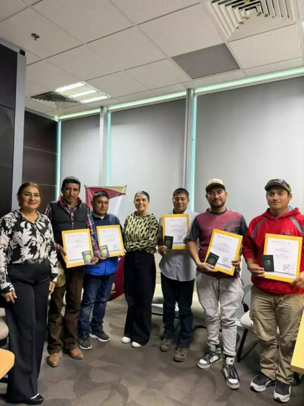 En esta ocasión, se realizó la entrega de sobres de viaje a cinco trabajadores que desarrollarán actividades como jornaleros agrícolas en la cosecha de tomate en Estados Unidos; ellos son originarios de los municipios de Llera, Tula e Hidalgo.